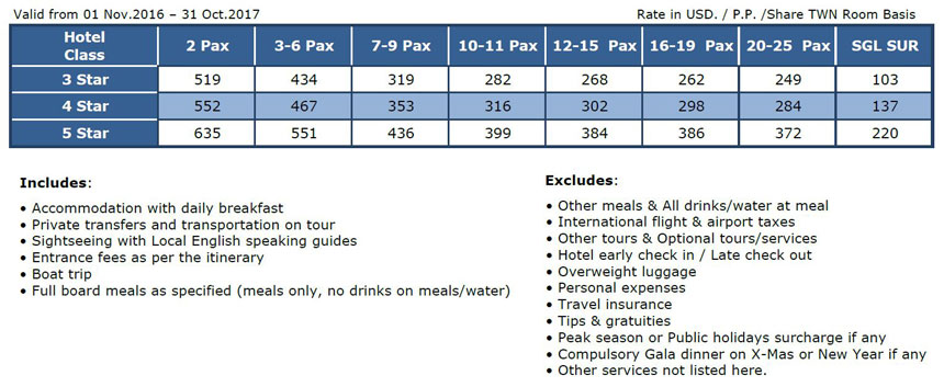 • Boarding the Halong cruise, visit Thien Cung cave and Dau Go Cave. Enjoy seafood lunch and dinner on board.