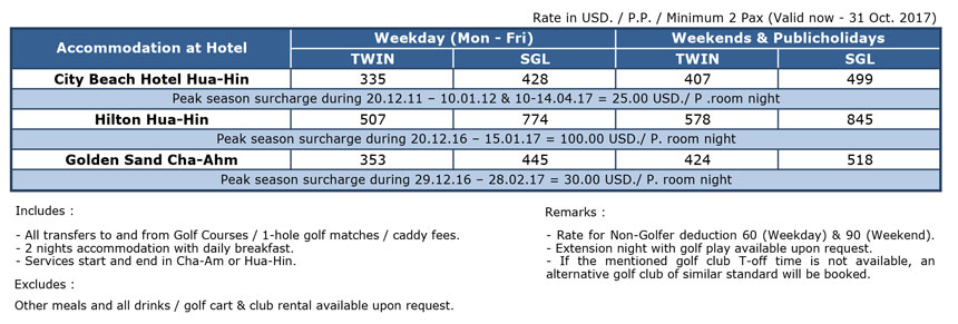 DAY (1): ARRIVE AT SELECTED CHA-AM OR HUA-HIN HOTEL